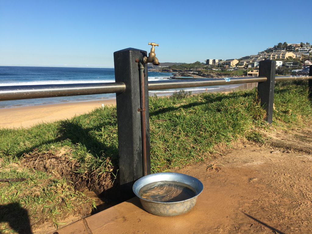 There was one dog water bowl along the walk near the beach. You can tip the water out and refill it as quite a bit of sand collects at the bottom of it. Consider bringing a dog travel water bottle like this one here if your dog gets thirsty at other locations along the way.